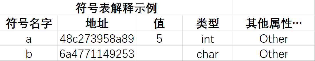 注意的是这里的符号表画的其实并不对。应该是没有值那一属性栏的,这里只是为了方便解释。