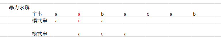 讲到KMP,不得不先提到暴力求解方法。在求字符串的子串匹配问题中,暴力求解是最简单易懂的,直观上就是当模式串和主串不相匹配的时候,模式串后移一个位置大小,然后再从头匹配。直到匹配到主串的结尾。