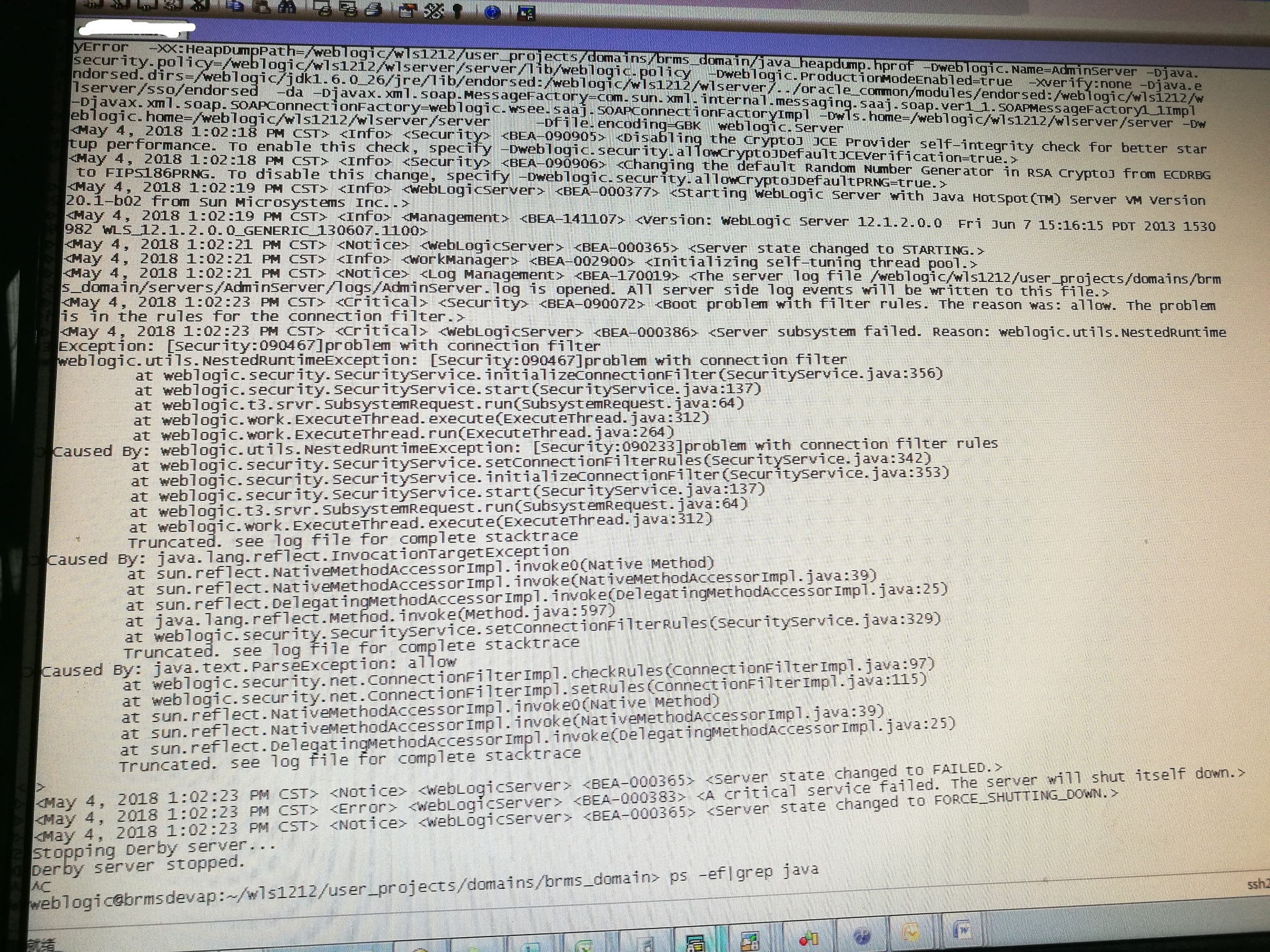 weblogic11g报错weblogic.utils.NestedRuntimeException: [Security:090467]problem with connection filter