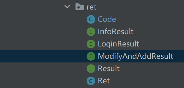 比如 InfoResult表示列的返回结果(输入为空或者不存在),LoginResult表示登陆时的各种状态,Result表示各种情况都会出现的状态(比如成功)等等。