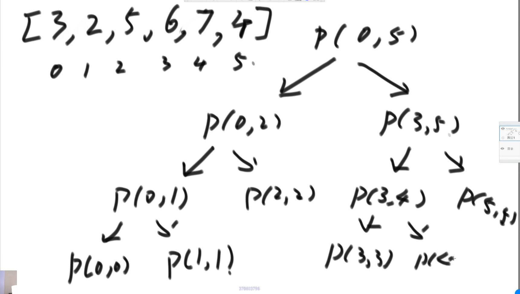 递归分析:P(0,5) 结果无法得到,入栈,先向左进行。P(0,2)结果无法得到,入栈,向左进行。P(0,1)结果无法得到,入栈,向左进行。P(0,0)可以直接得到结果,然后把结果返回给P(0,1),但是这时候P(0,1)还是无法得到结果(右边的还没计算出来),仍然是入栈状态。向右进行,P(1,1)可以直接得到结果,把结果返回给P(0,1)。这时候P(0,1)知道结果了(左右都计算出来了),然后把结果返回给P(0,2),自己出栈。P(0,2)仍未得到结果,还是入栈状态。向右进行,P(2,2)可以直接得到结果,把结果返回给P(0,2),P(0,2)此时得到结果,返回给P(0,5),自己出栈…… 以此类推,然后进行P(0,5)的右子树。