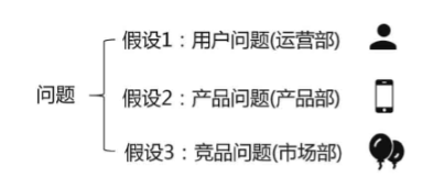 假设3竞品问题:指竞争对手有什么大动作,例如竞争对手在搞活动促销,用户都跑到竞争对手那边了。通过调研发现,竞品最近没有搞大的活动。最后得出结论:没有竞品问题