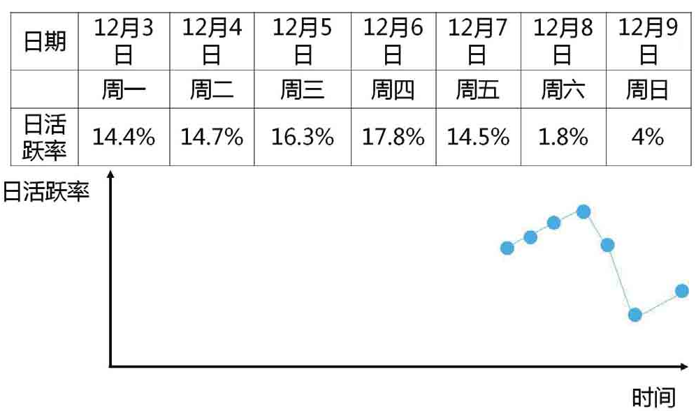 例如图2-55里的表格是一家公司App的一周日活跃率,老板交给你以下任务: