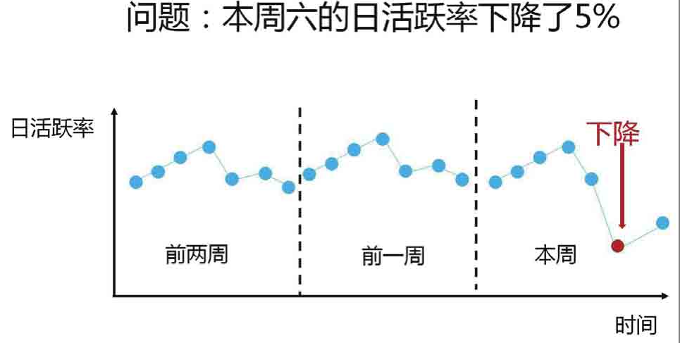 这时候可以跟负责渠道推广的同事了解情况,例如发现渠道B的投放活动在周六那天正好结束了,导致App的新用户少了,从而导致了日活跃率下降。