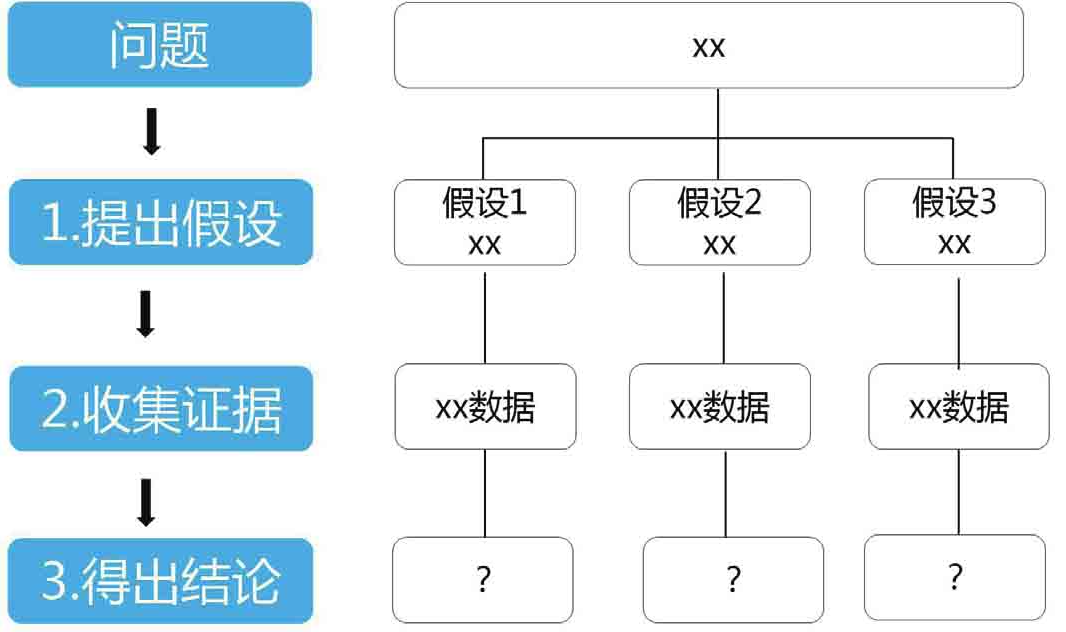 根据要解决的问题,提出假设。例如警察破案的时候会根据犯罪现场提出假设:这个人有可能是嫌疑人。
