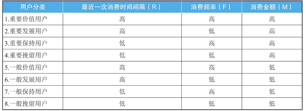 (R最近最近一次消费时间间隔、F消费频率、M消费金额)