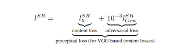 이 함수에는 content loss 과 adversarial loss 가 포함되어 있습니다.