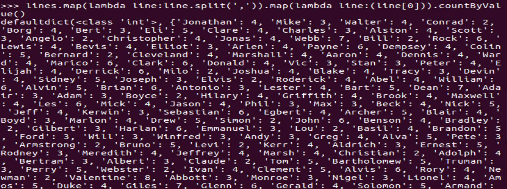 每个学生选修了多少门课?map().countByValue()