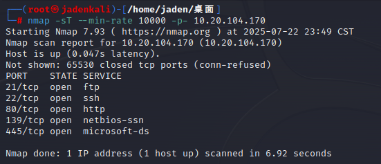 nmap -sT --min-rate 10000 -p- 10.20.104.170