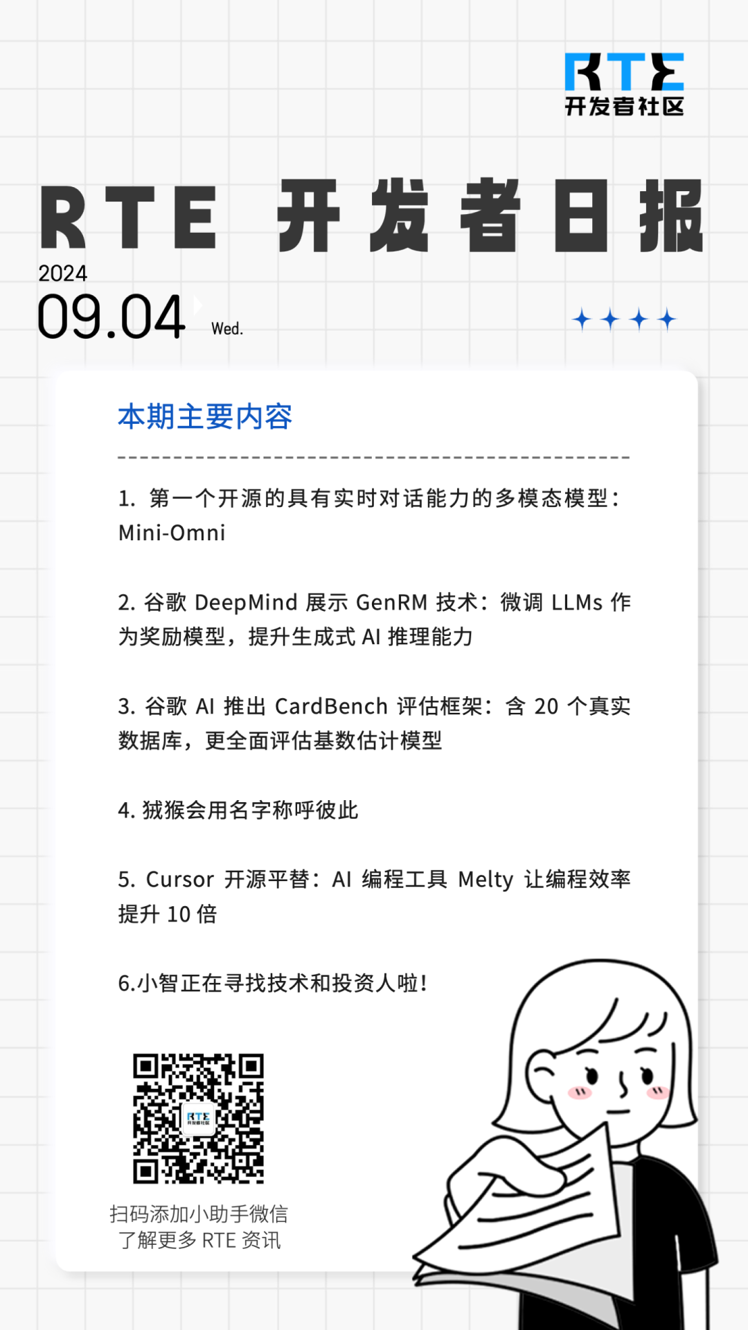 Mini-Omni:具有实时对话能力的多模态模型;狨猴会用名字称呼彼此 丨 RTE 开发者日报