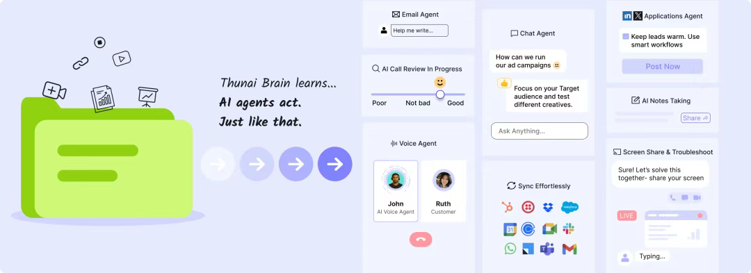 Thunai 定位为一款具备自学习能力的 Agentic AI 平台,面向企业用户,旨在将分散的组织知识转化为智能智能体,自动处理电话、聊天、邮件及任务,助力支持、销售和营销自动化。其核心价值在于通过持续学习组织内多格式数据(文档、视频、会议记录等),打造多模态、具备真实人类交互感的 AI 智能体,解决了传统自动化工具依赖静态脚本、难以持续进化的痛点,满足企业对智能、高效、可扩展自动化的需求。