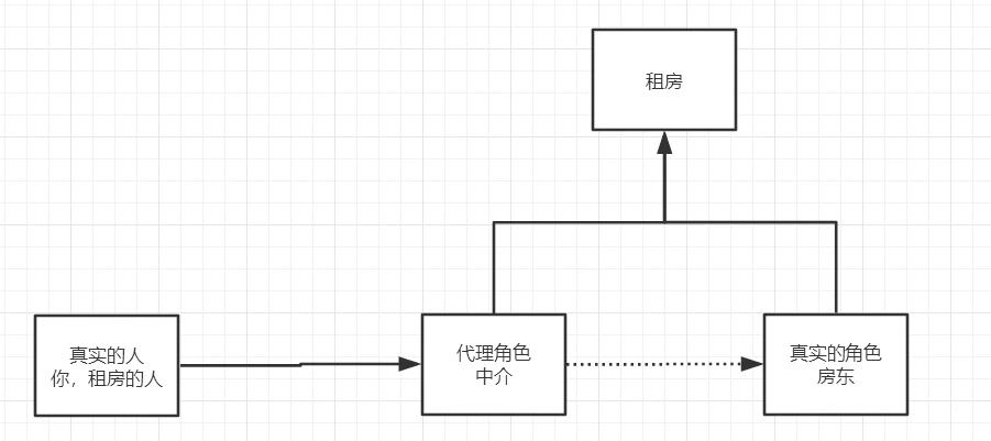 public class Client { public static void main(String[] args) { //房东要租房子 Host host = new Host(); //代理,中介帮房东租房子,但是代理角色一般会有附属操作 Proxy proxy = new Proxy(host); //你不用面对房东直接找中介租房即可 proxy.rent(); }}