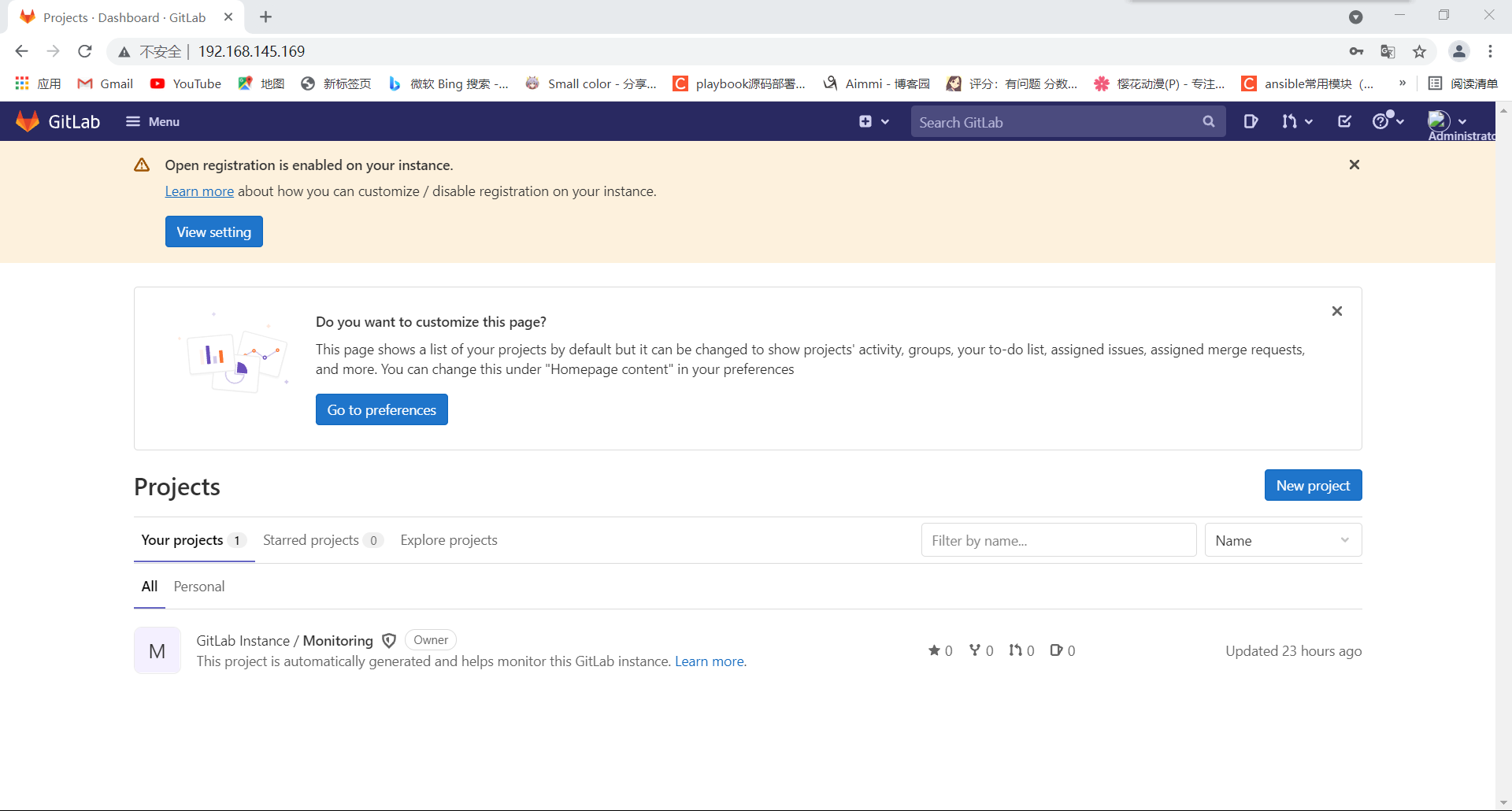 [root@localhost ~]# git clone http://192.168.145.169/hooome/myprojectl.git 正克隆到 'myprojectl'... Username for 'http://192.168.145.169': root Password for 'http://root@192.168.145.169': remote: Enumerating objects: 3, done. remote: Counting objects: 100% (3/3), done. remote: Total 3 (delta 0), reused 0 (delta 0), pack-reused 0 展开对象中: 100% (3/3), 完成.