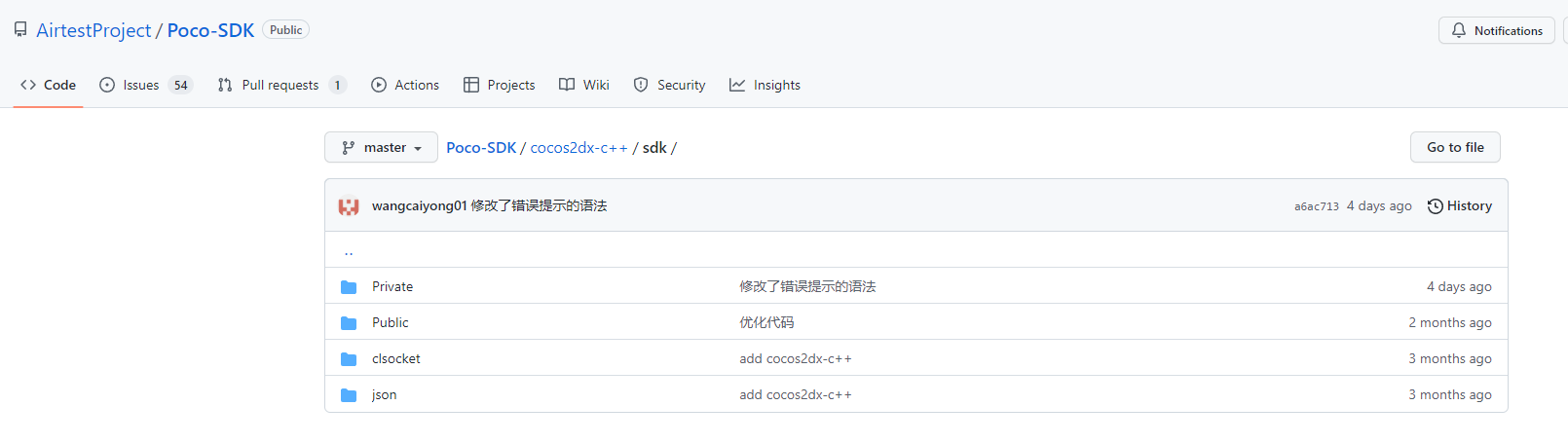 在AirtestProject项目上,下载对应的SDK包:https://github.com/AirtestProject/Poco-SDK/tree/master/cocos2dx-c%2B%2B/sdk