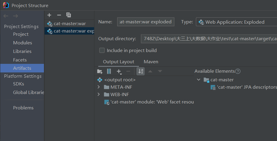 Cannot build artifact 'cat:war exploded' because it is included into a circular dependency (artifact 'cat:war exploded', artifact 'cat-master:war exploded')