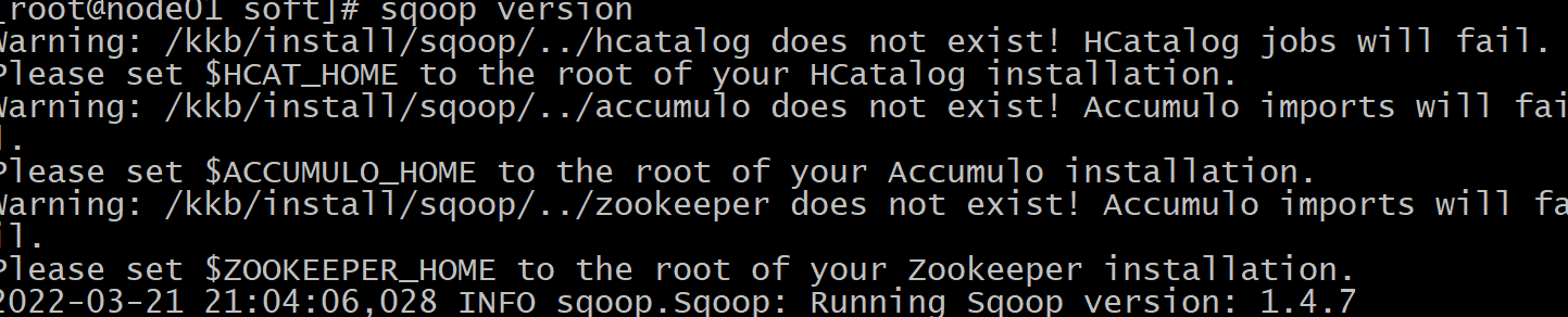 sqoop出现hcatalog does not exist! HCatalog jobs will fail.,accumulo does not exist! Accumulo imports will fail,