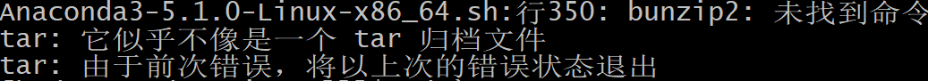 linux安装anaconda出现“Anaconda3-5.1.0-Linux-x86_64.sh:行350: bunzip2: 未找到命令 tar: 它似乎不像是一个 tar 归档文件