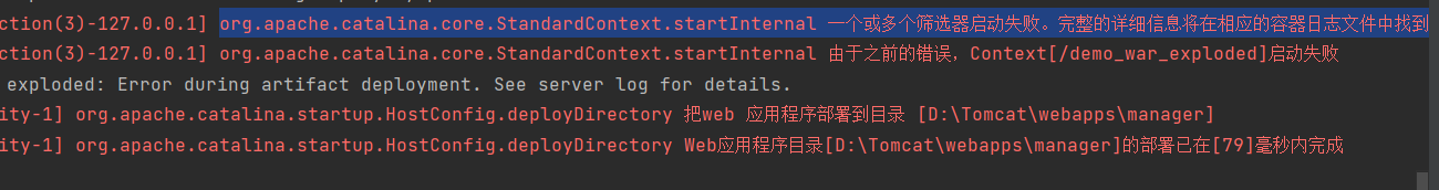 org.apache.catalina.core.StandardContext.startInternal 一个或多个筛选器启动失败。完整的详细信息将在相应的容器日志文件中找到
