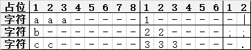 lst = [('aaa', '1', '|'), ('b', '22' , ';;'), ('cc', '333', '.')] for (s1, s2, s3) in lst: # 顺序填入 lst1 = ['-'] * 8 for i in range(len(s1)): lst1[i] = s1[i] lst2 = ['-'] * 6 for j in range(len(s2)): lst2[j] = s2[j] # 逆序填入(顺序填入,逆序输出也可) lst3 = ['-'] * 2 for k in range(len(s3)): lst3[-1 - k] = s3[k] print(''.join(lst1) + ''.join(lst2) + ''.join(lst3)) # 输出: # aaa-----1------| # b-------22----;; # cc------333----.