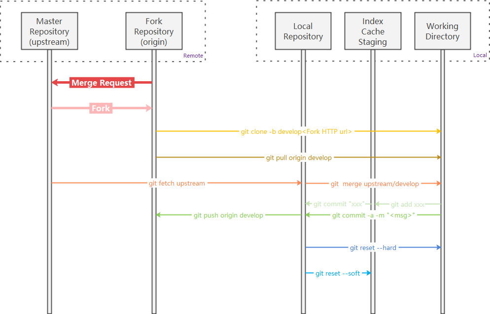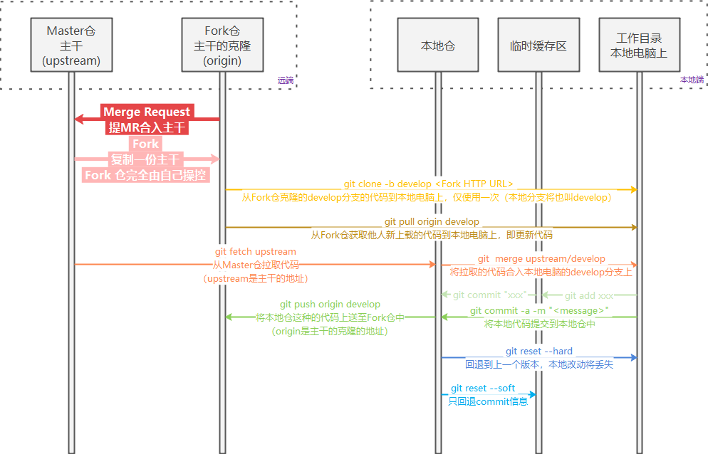 【解释】 从主库 upstream 拉取名为 develop 的分支的代码到远端分支副本 upstream/develop 中