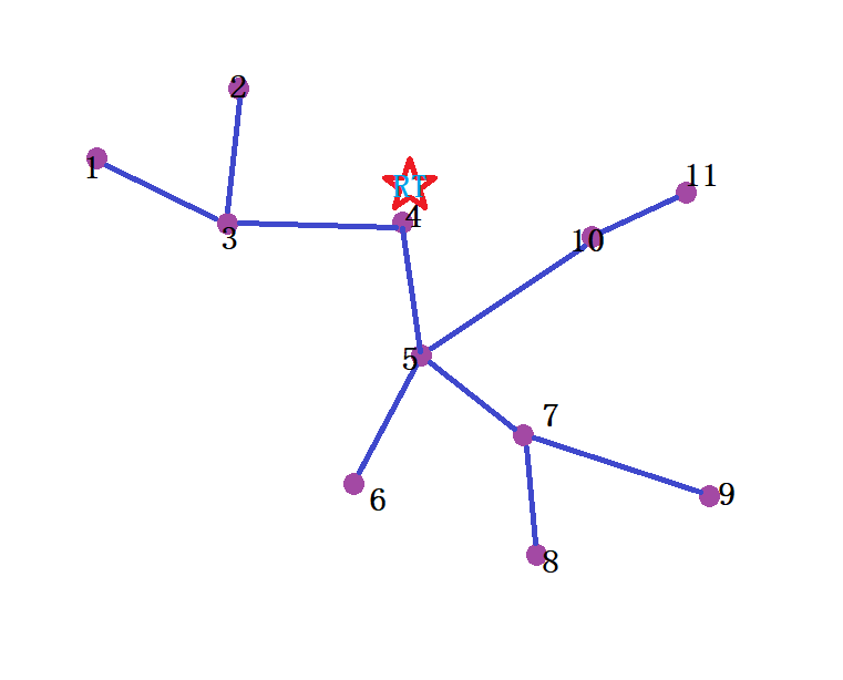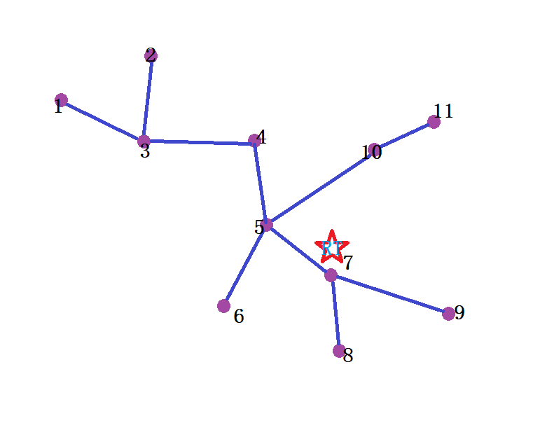 假如一开始的跟是四号点(只是一个例子,和题目无关,题目里初始1为根),那么size[5]的值是7,如果将根换为7号点,如图