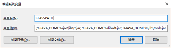 CLASSPATH =.;%JAVA_HOME%\jre\lib\rt.jar; %JAVA_HOME%\lib\dt.jar; %JAVA_HOME%\lib\tools.jar