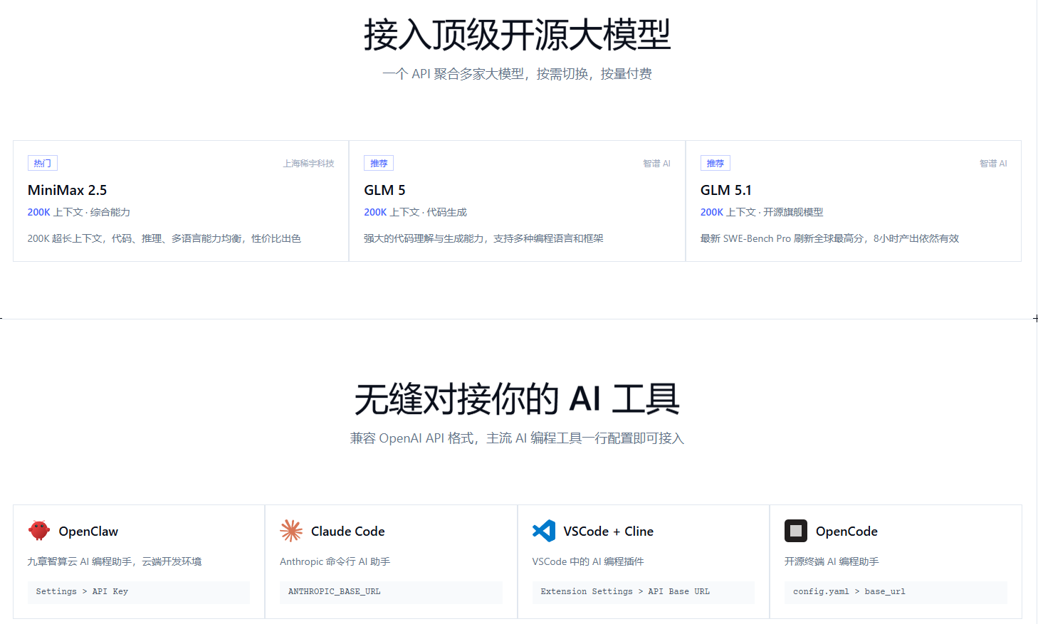 不管你平时用Claude Code、Cline、Continue,还是自己本地部署了OpenClaw,全都能无缝接入。