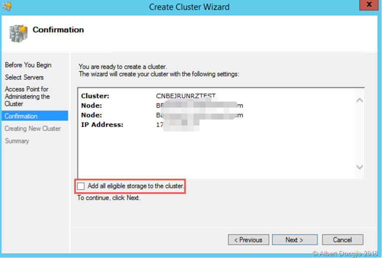 4)将"Add all eligible storage to the cluster”复选框勾掉,点击”下一步”