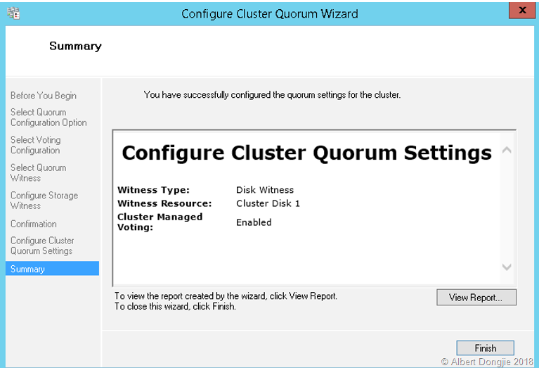 5)由于创建群集时,还未配置仲裁磁盘,才会出现如下的警告信息