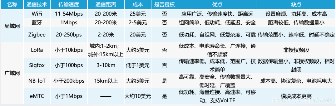 看了这么多的无线通信技术,不管是局域网通信技术还是广域网通信技术,我们对它们也有了一定的了解,接下来我们来看看他们的对比。