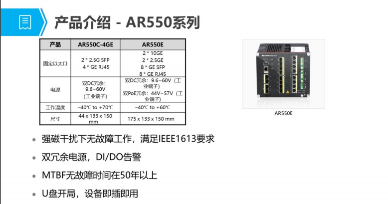 AR550系列物联网关是专为严酷环境设计的工业路由交换设备,可以满足在恶劣的温度、湿度、电磁干扰等环境下的网络通信需求。AR550系列集成路由、交换和VPN等功能于一体,具有强大的应用扩展能力,可广泛应用于各行业如电力、交通等工业化领域。