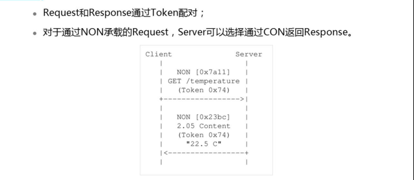 异步可靠响应模式:当Server不能立即响应Request时,可以先通过空Ack msg响应Client,当Server准备好后,通过新的CON Msg将resonse发送给Client