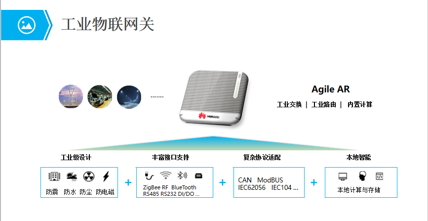 传统的网关或者路由器一般是放在机房里面的,对环境的要求很高,工业物联网网关一般都是直接放在外面,对环境的适应能力要求比较高,必须要有一个工业级的设计,例如防震、防水、防尘、放电磁。另外还需要支持多种网络制式,具备多种行业接口,例如Zigbee、RS485、RS232等。同时支持多种复杂协议的适配,例如PLC、CAN、M-BUS等。再加上一个边缘计算能力,组成了一个复杂的工业物联网网关。