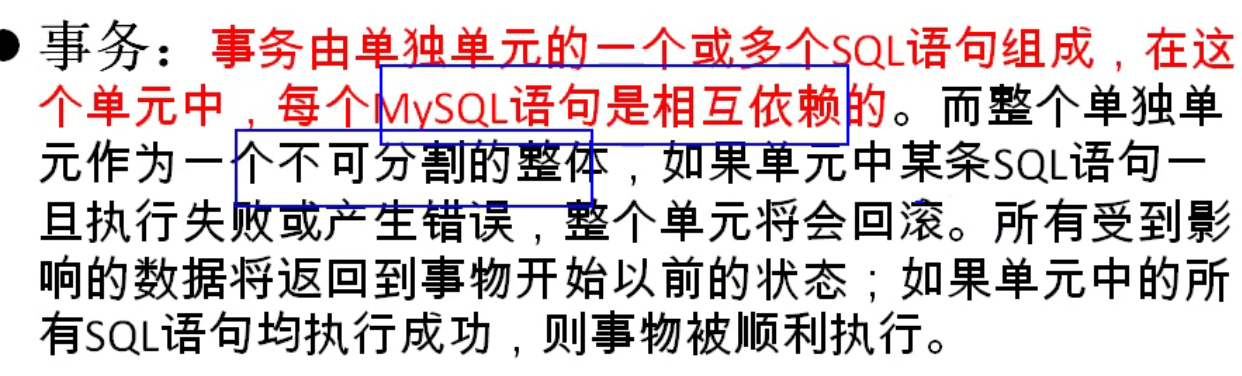 一个或一组sql语句组成一个执行单元,这个执行单元要么全部执行,要么不执行。