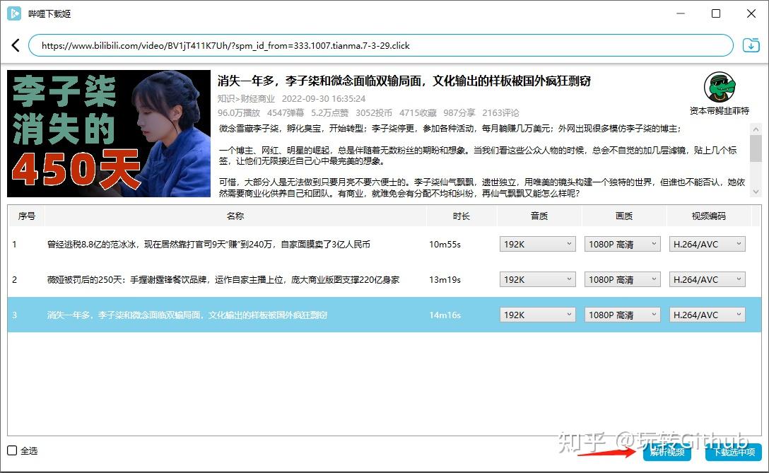点击【解析视频】,然后点击【下载选中选】,如图所示: