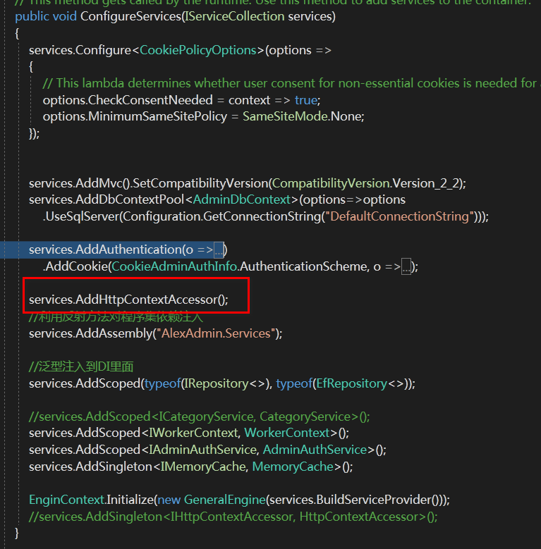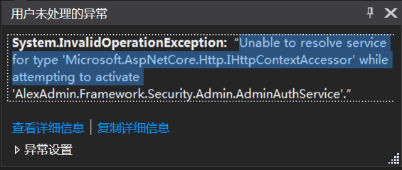 Unable to resolve service for type 'Microsoft.AspNetCore.Http.IHttpContextAccessor' while attempting