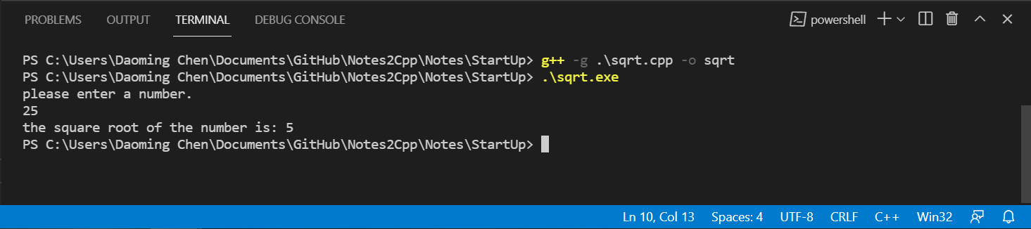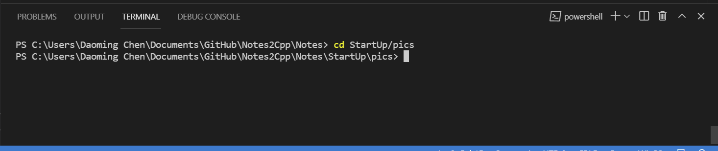 如图,目前所在的文件是StartUp中,也是MyFirst.cpp所在的的文件夹;若不是,需使用指令cd,将路径切换到.cpp文件所在的路径。