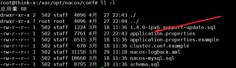 vim application.properties