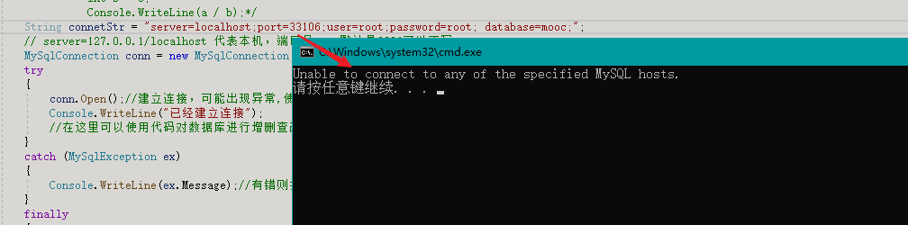String connetStr = "server=localhost;port=3306;user=root;password=root; database=mooc;";