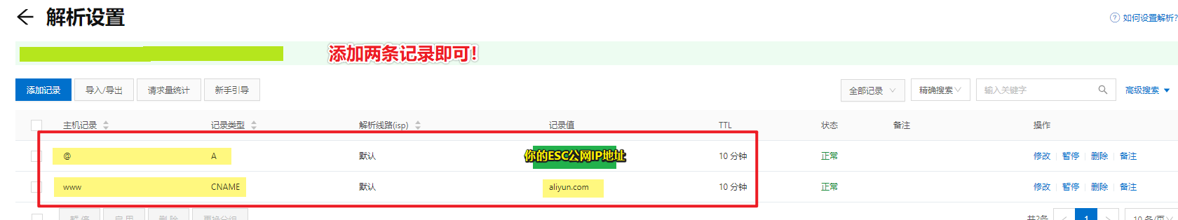 这里假设你的域名已经备案成功了 ,可以看看这里域名解析,即可使用你的域名访问了