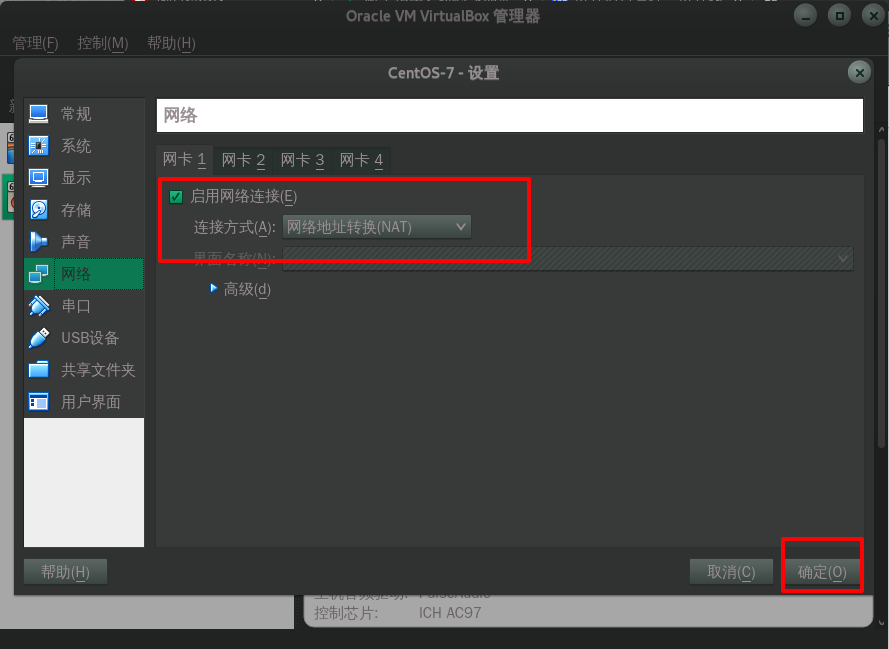 在网络哪里,把网络连接选为NAT,确定,现在可以启动了。