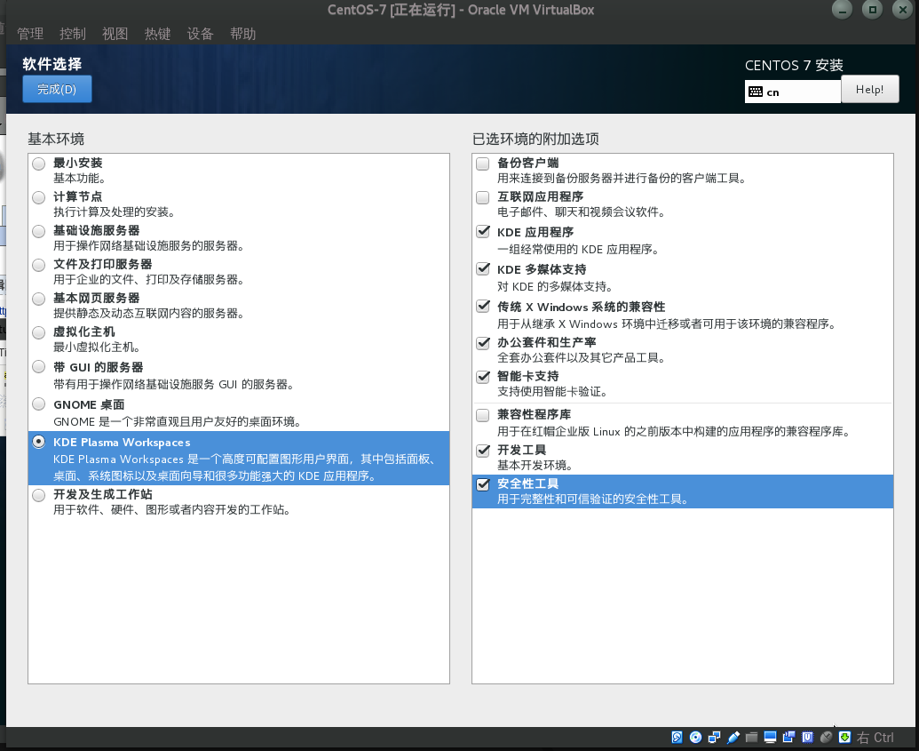 点击软件选择,根据自己需要选择安装,如果不熟悉,就不要选择,默认最小安装,不过要安装图形界面的话,还是选择一下GNOME或者KDE。