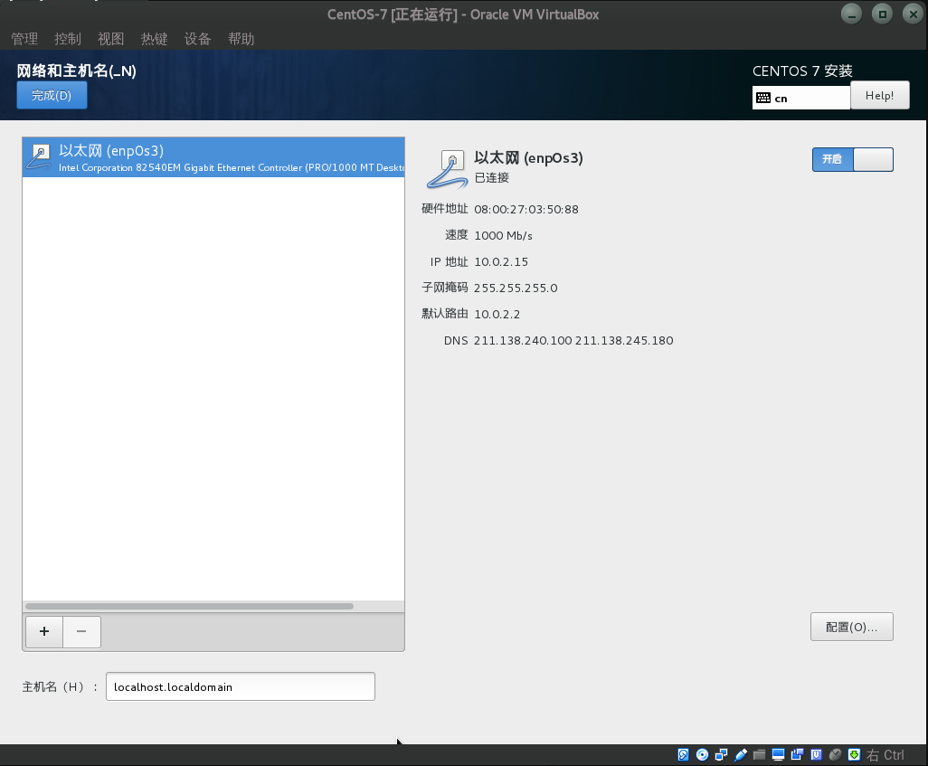 在网络和主机名里把网络打开,主机名默认就好,要改也得。