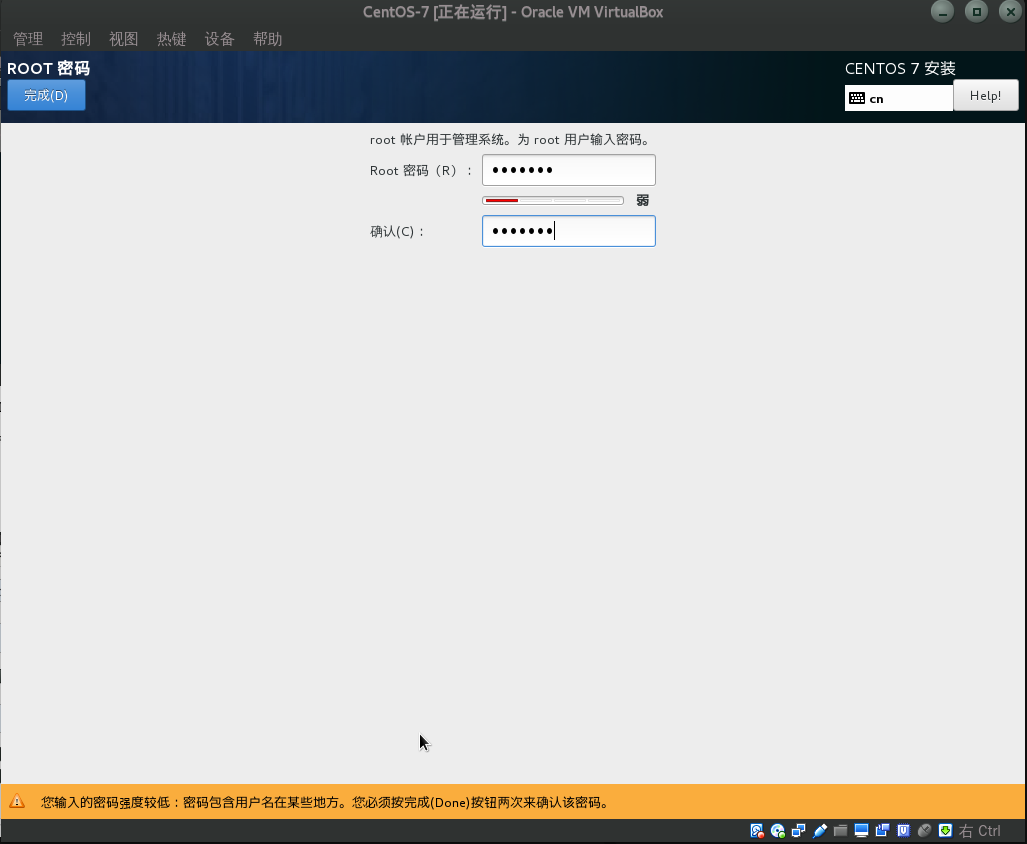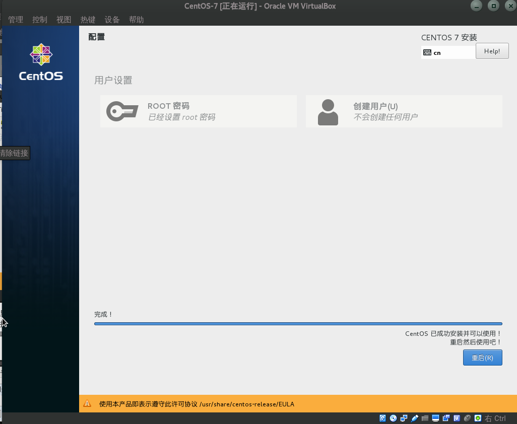 在这里设置好root用户的密码,和创建一个用户。新手不建议在root账户下使用系统,所以应该建立一个普通用户,我在这里就不演示了。都说root账户是把裤衩穿在外面的男人,它在系统中有至高无上的权限,哈哈。但是,高的权限也意味着高的风险,比如你不小心在根目录下执行了 rm -fr / 命令,嘿嘿,那就等着给你的系统收尸吧。