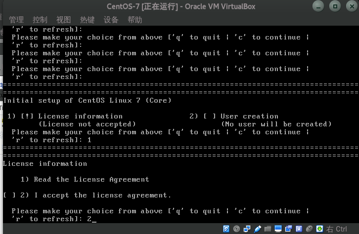 重启出现这个,是CentOS-7的初始化信息,输入1回车,再输入2回车,再输入q回车。
