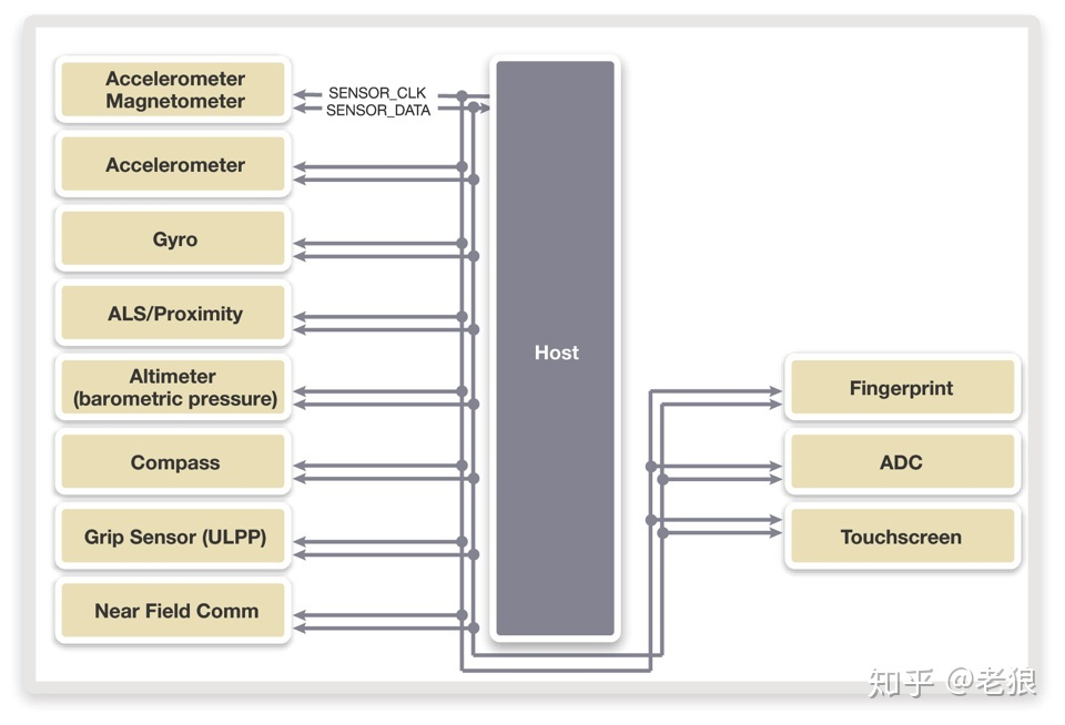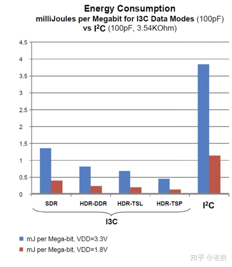 在图中,左边慢速I2C设备虽然共用了一个I2C总线,但每个设备都有自己的INT和Host相连,用于通知Host有事发生,而不是让Host不停来查询,这样才能让Host没事进入省电状态,更加高效。右边的高速设备更是另辟自己的高速I2C总线。如此这般,理想中的简洁设计在现实中越来越被破坏的支离破碎,常常是INT线比I2C线多得多。再加上进一步提高速度的需求,业界呼唤一种新的解决方案。于是I3C应运而生。