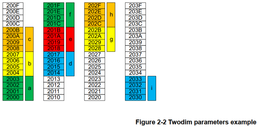 图2-2是一个使用twodim机制进行内存访问的例子,它有: