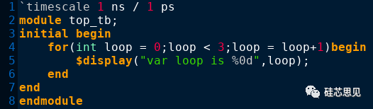 在了解了上述for和fork...join_none结构仿真时的各种情况之后,有些朋友可能不期望将循环变量的调整交由for循环自动完成,而是在循环体内部手动的对循环变量进行修改,那么这样的仿真会导致什么情况呢?请看下例。