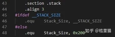 上图是startup.s里面栈的初始化,主要就是分配一下大小,重置一下指针。