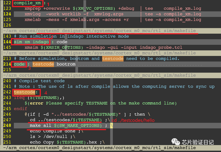 make sim_xm_indago TESTNAME=hello TOOL_CHAIN=gcc - 仿真主目录下makefile分析(compile+testcode)